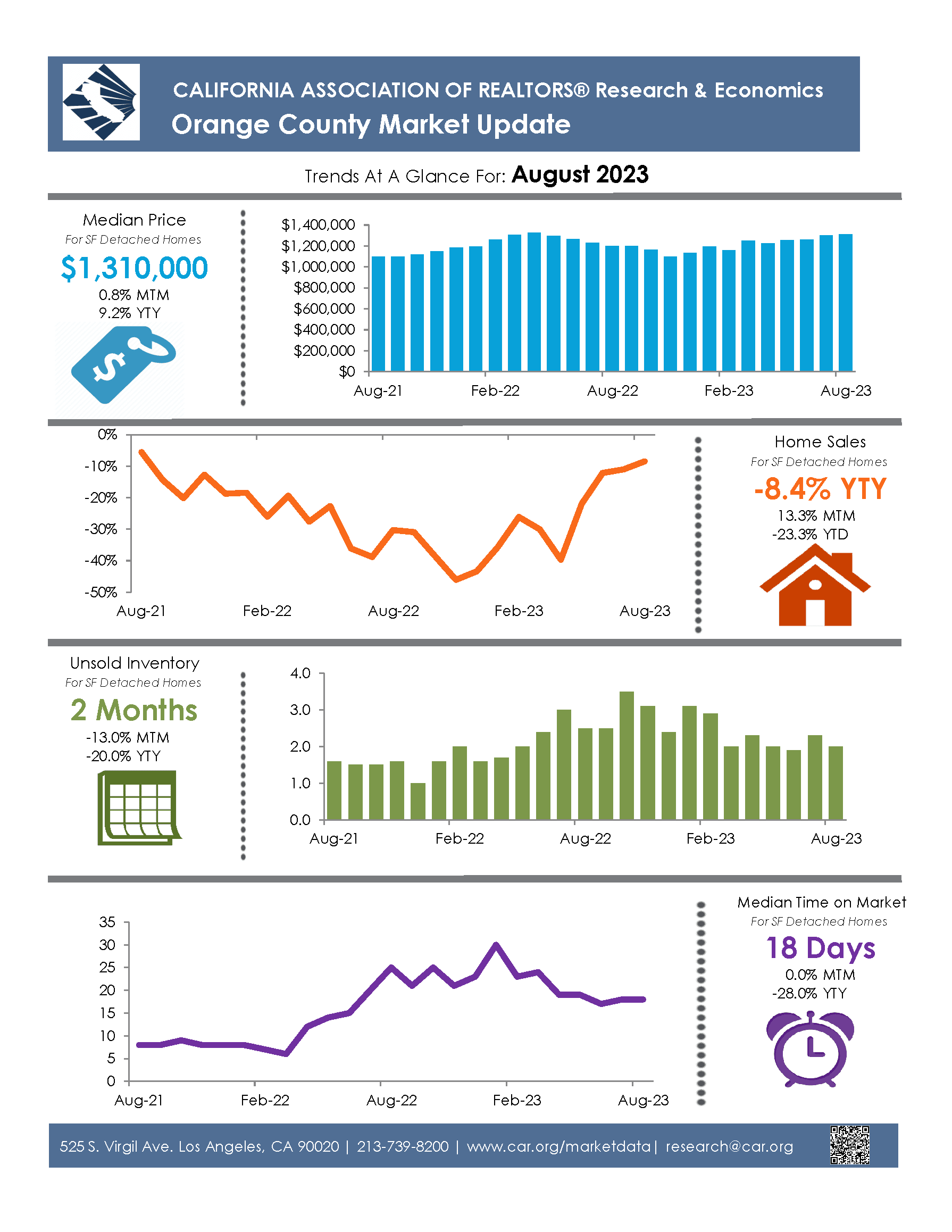 As we approach the holiday season, there has been questions about home prices and low housing inventory so let’s go ahead and take a closer look at the Orange County Market Fast Stats for August 2023.