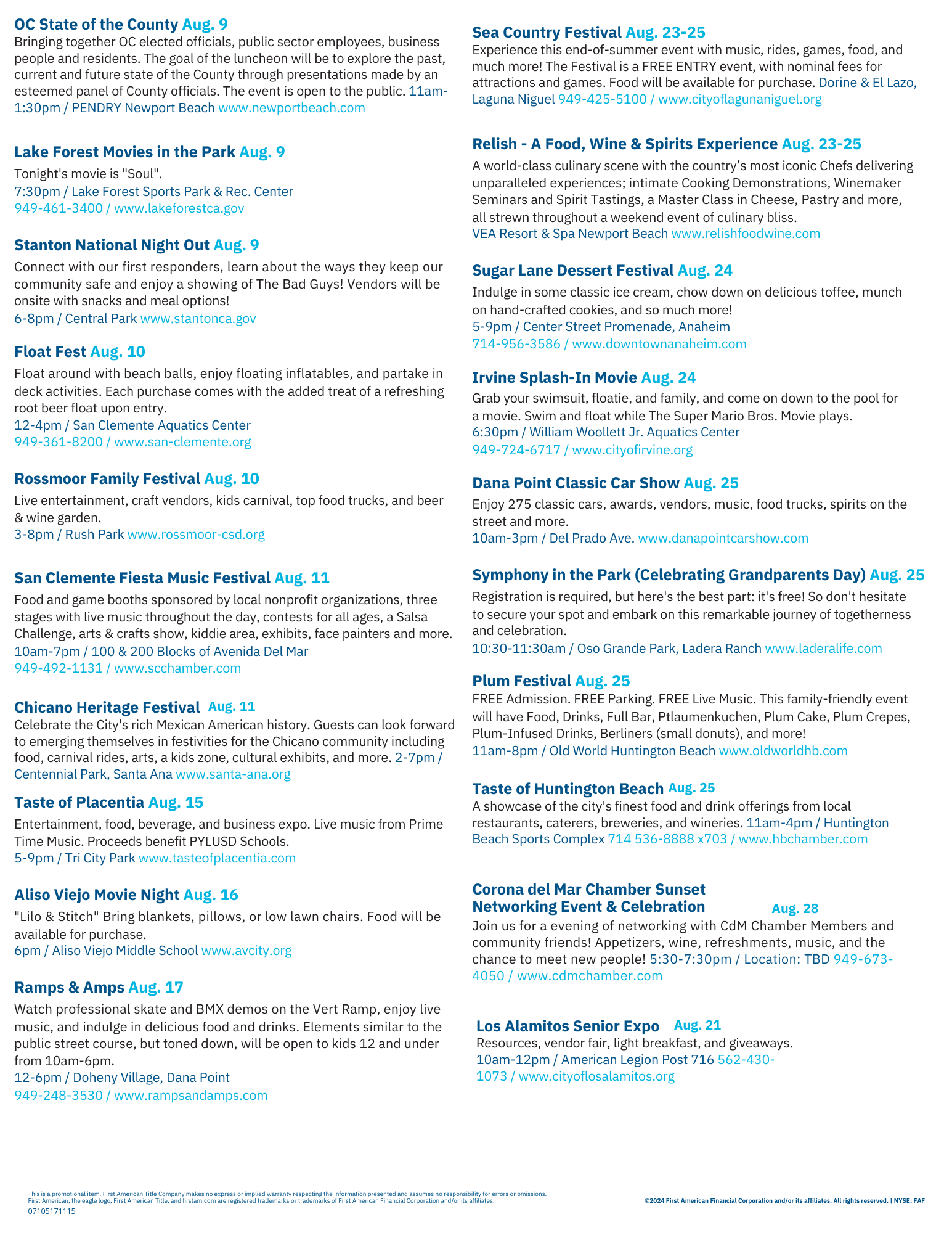 AUGUST 2024 | ORANGE COUNTY CALENDAR OF EVENTS