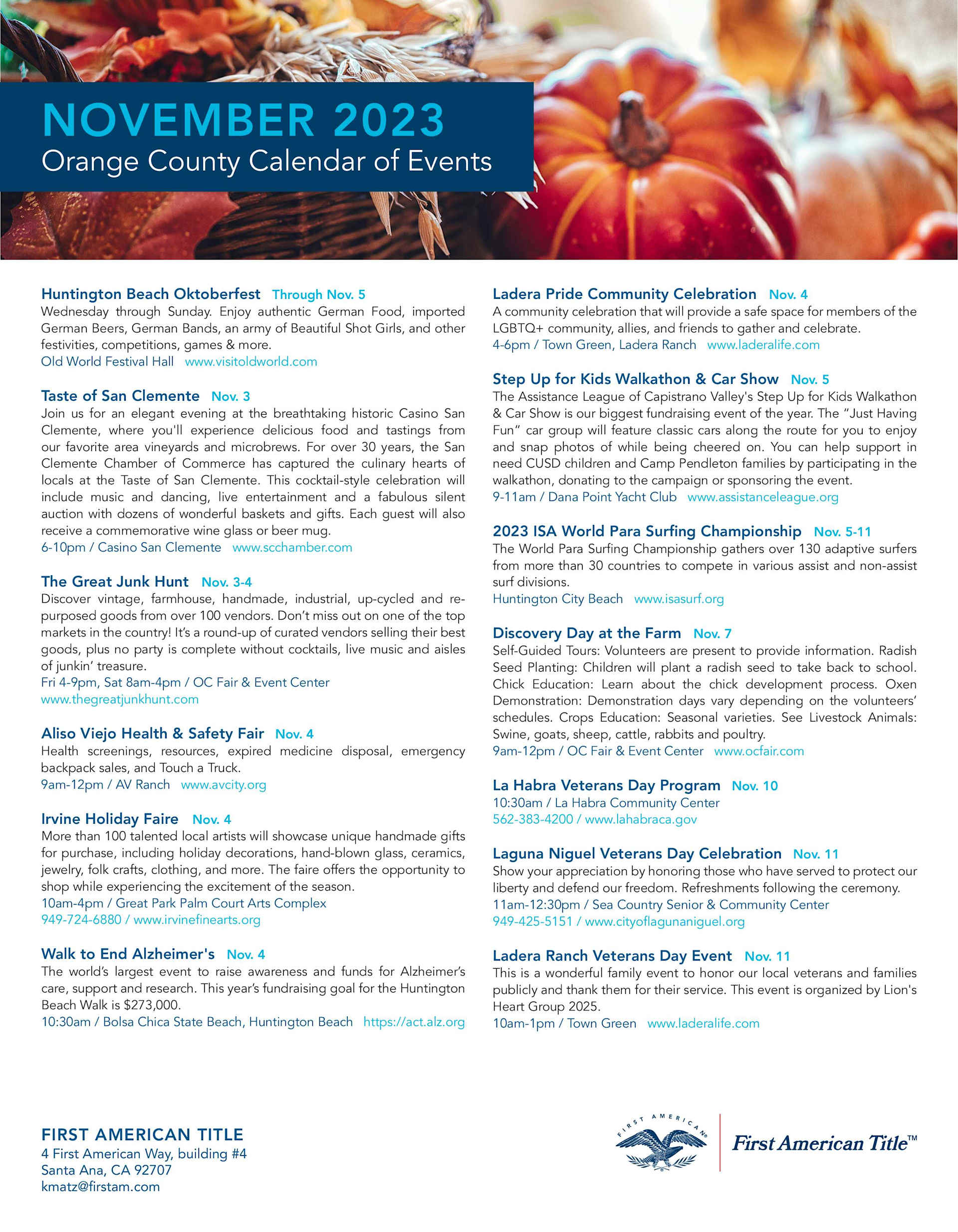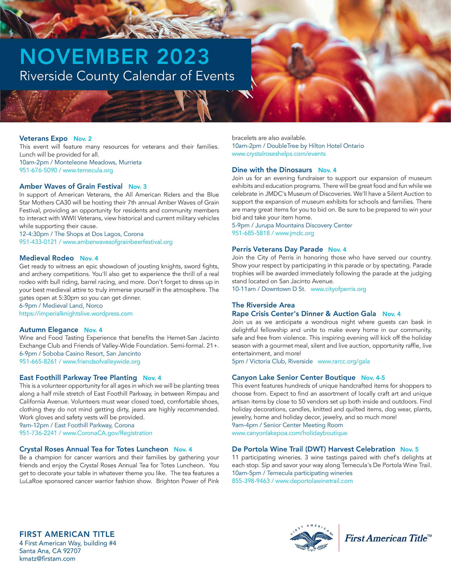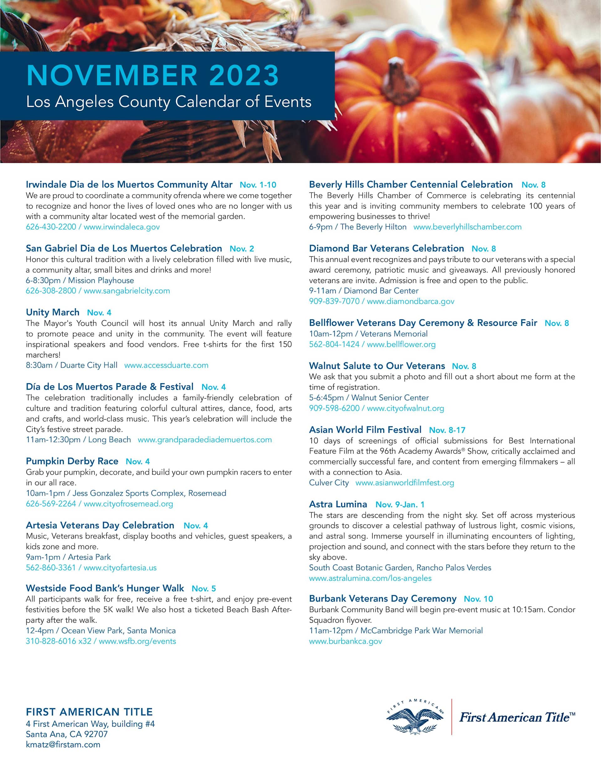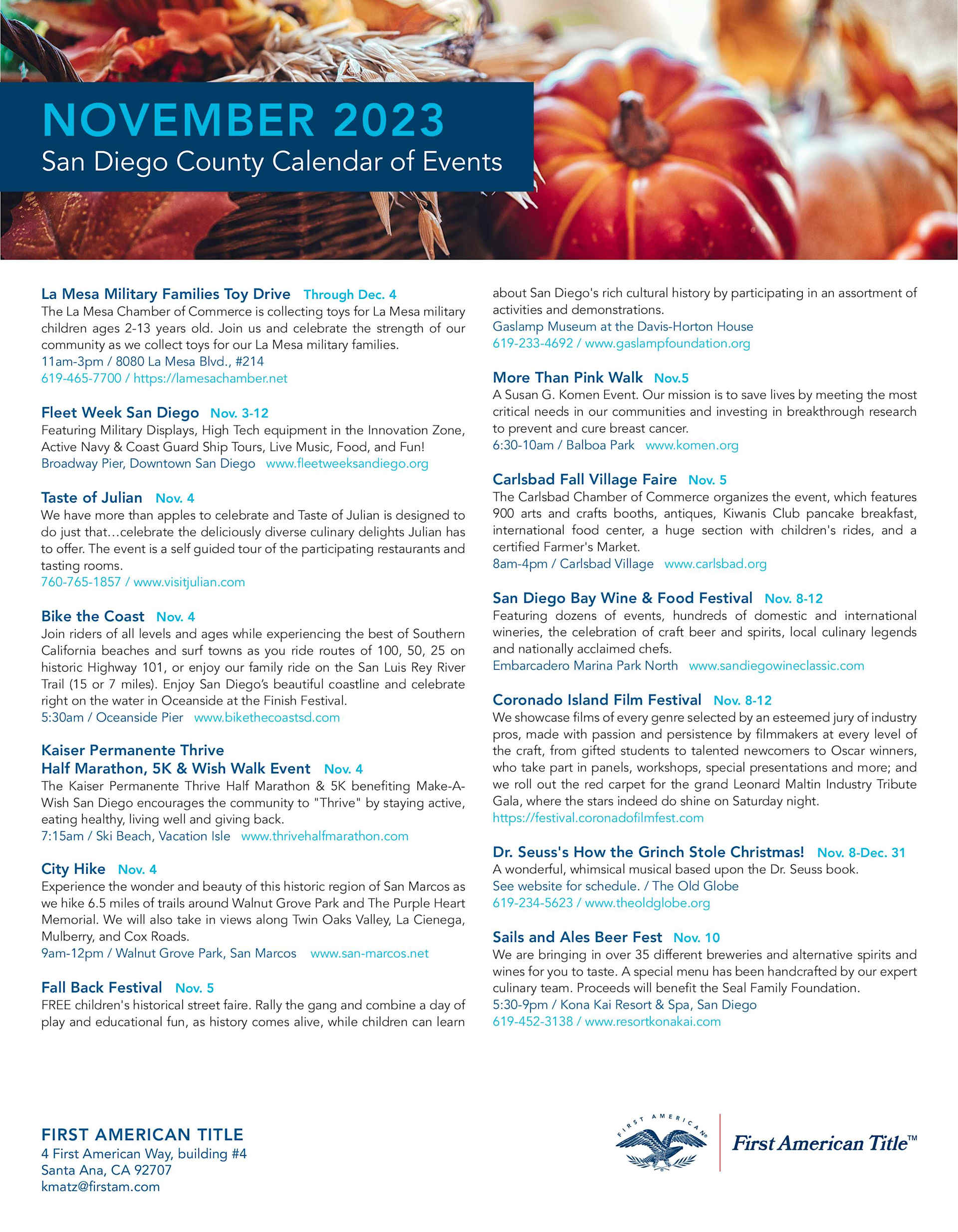 NOVEMBER 2023 - CALIFORNIA CALENDAR OF EVENTS