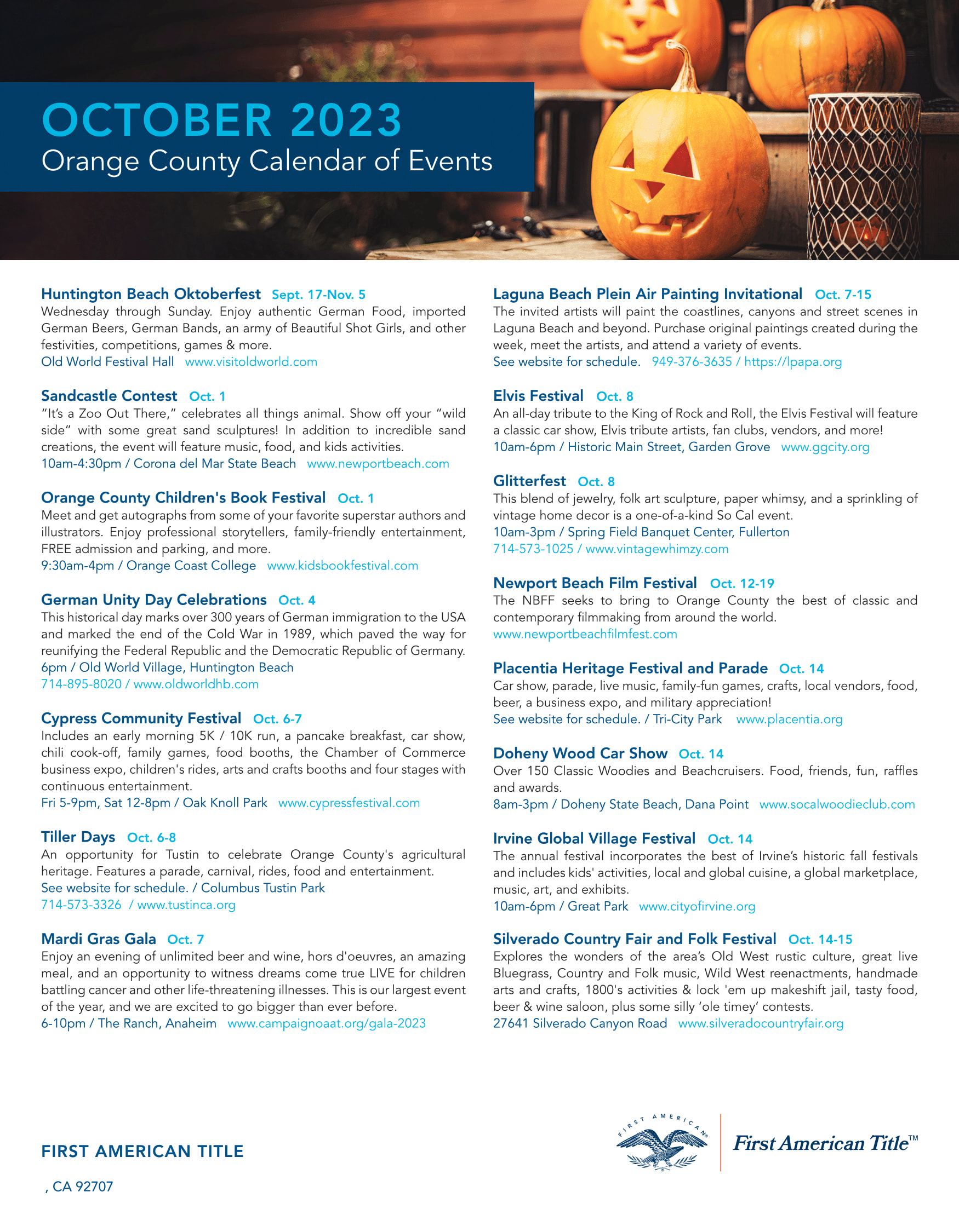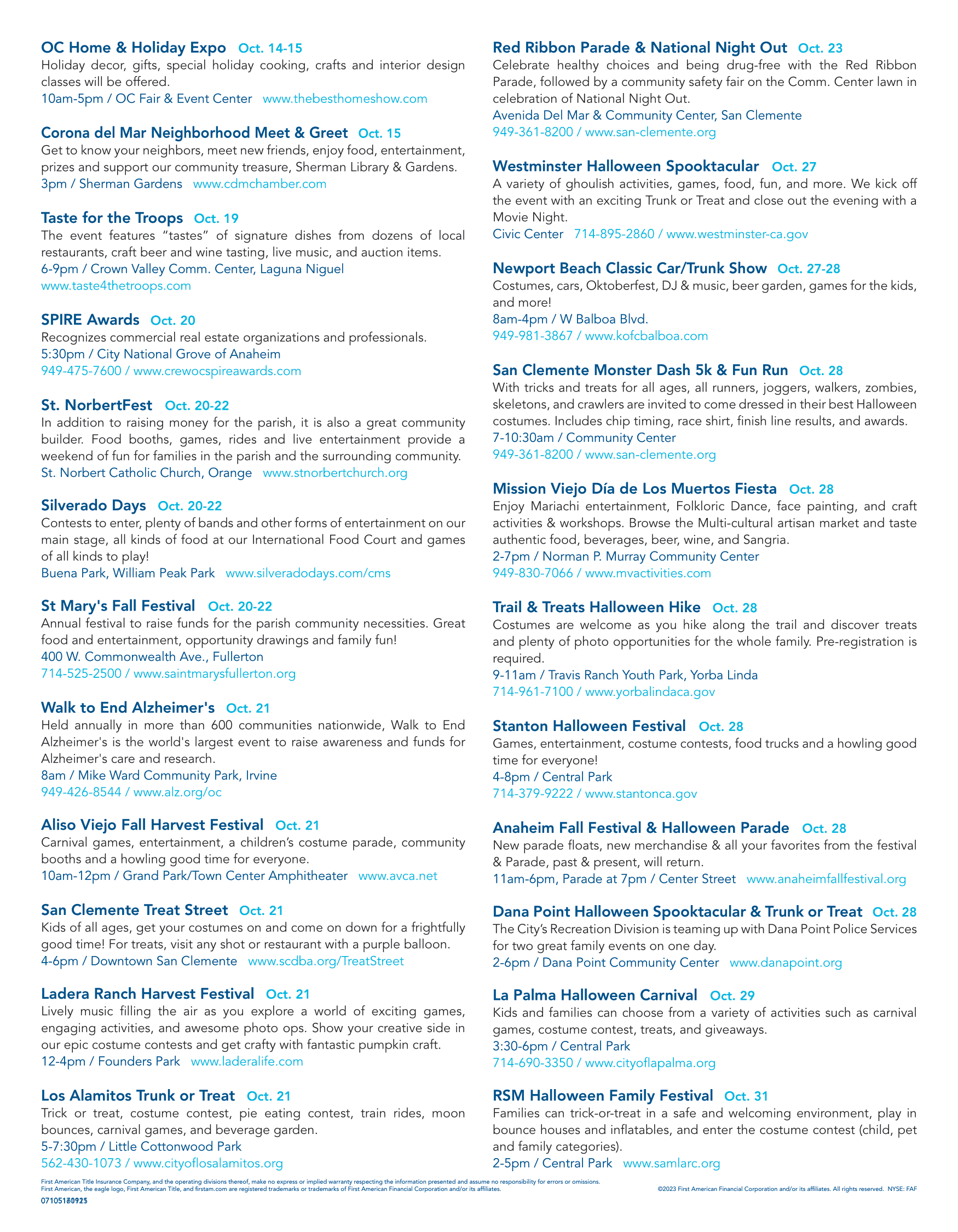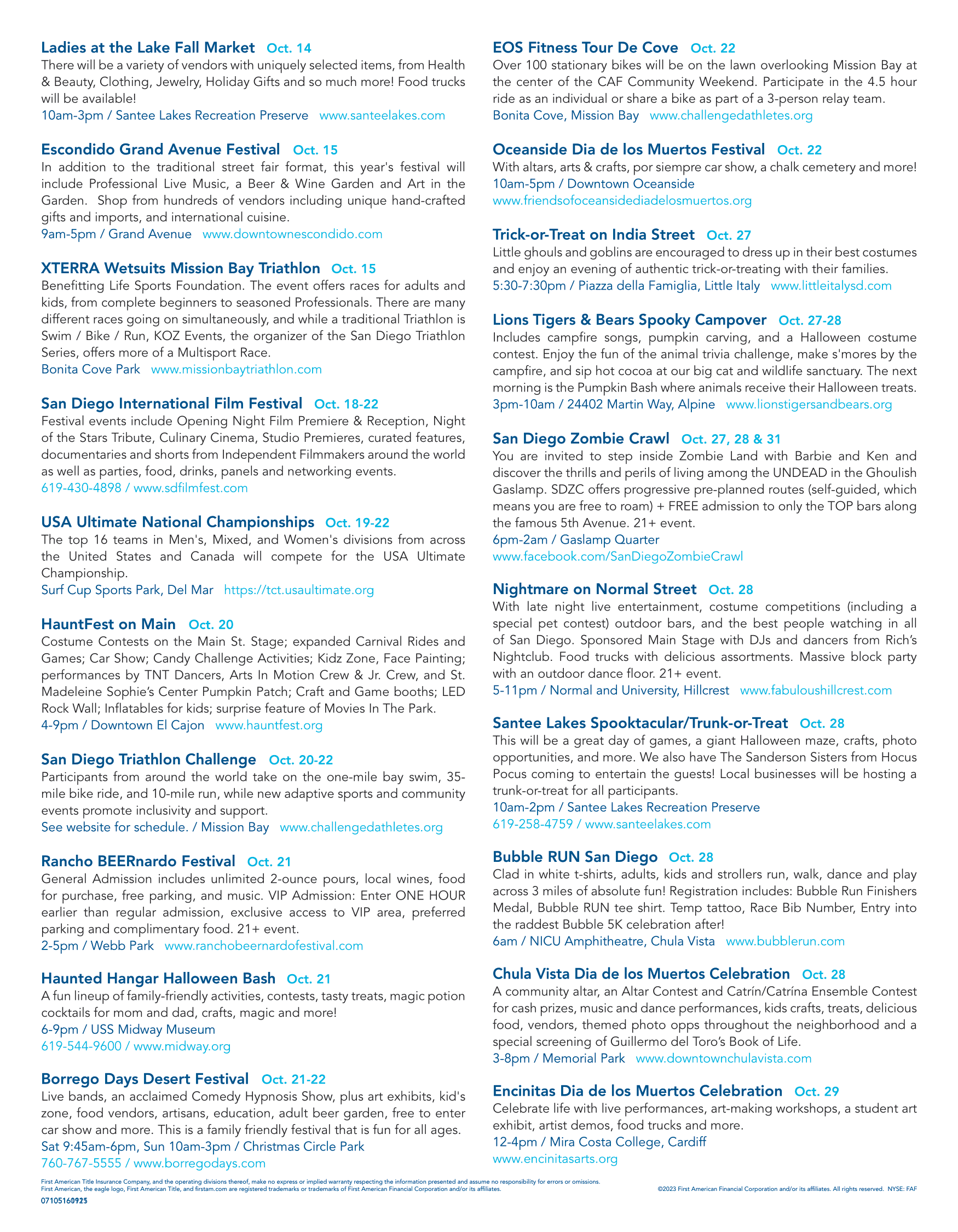 OCTOBER 2023 - CALIFORNIA CALENDAR OF EVENTS