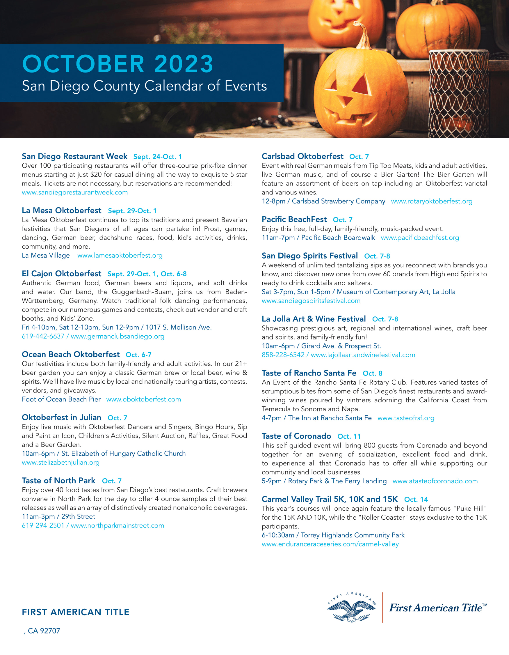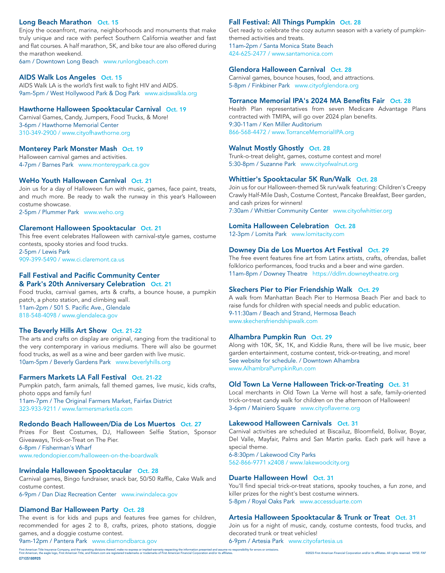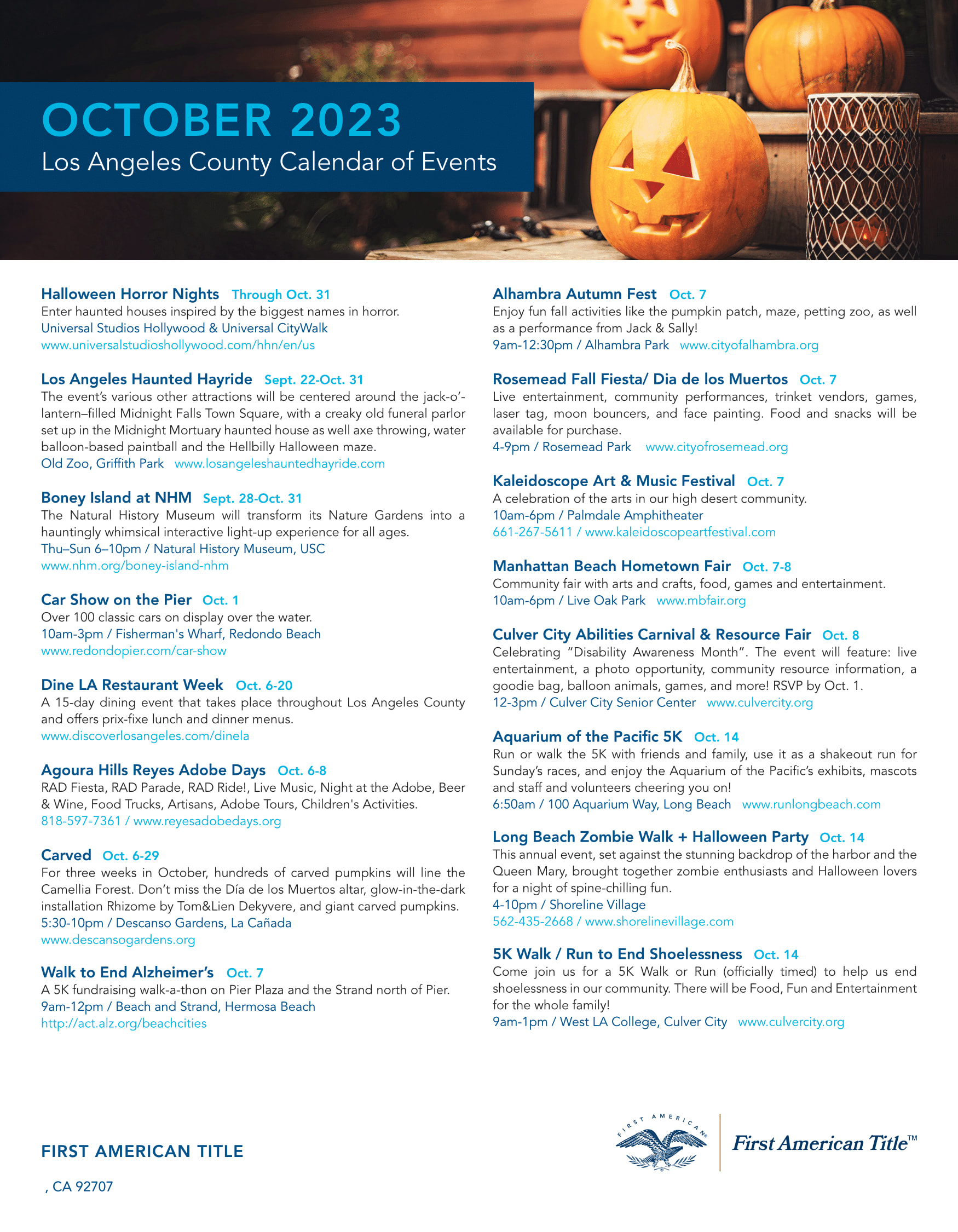 OCTOBER 2023 - CALIFORNIA CALENDAR OF EVENTS