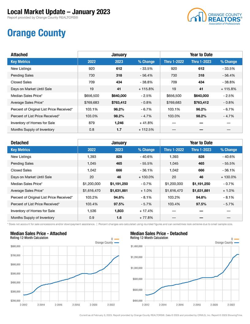 The housing market has gone through a lot of change recently. And today we’re gonna take a look at the Orange County Market Fast Stats for January 2023.