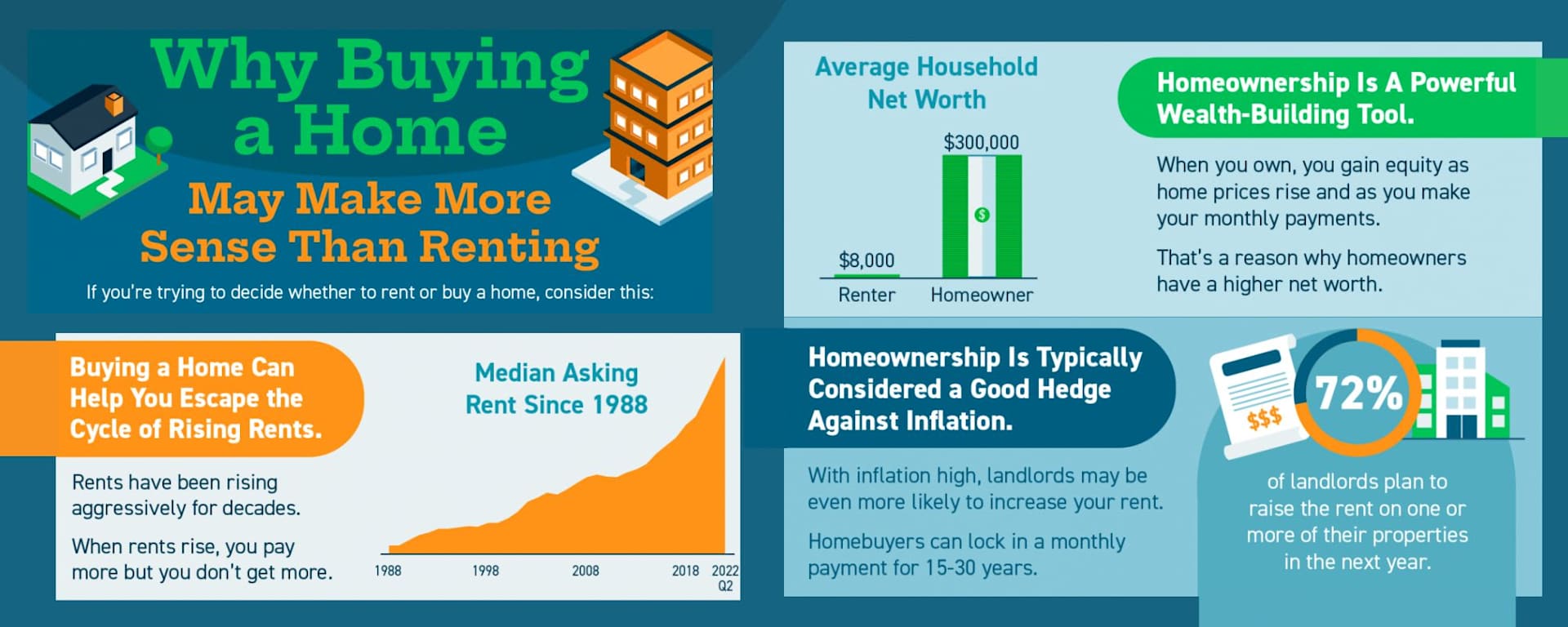 - Homeownership can help you escape the cycle of rising rents, builds your wealth, and serves as a hedge against inflation.