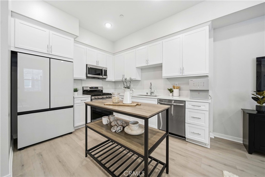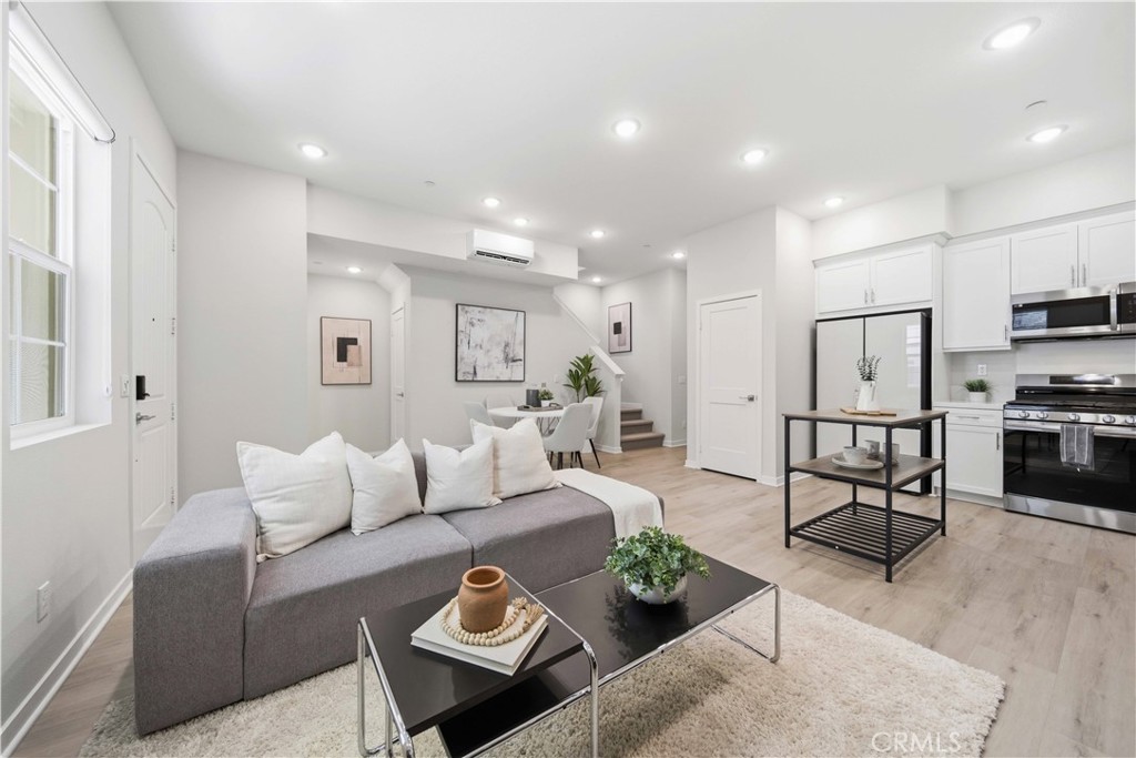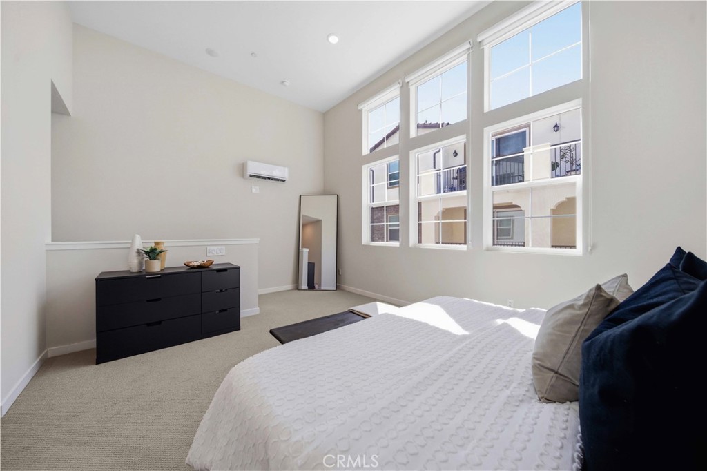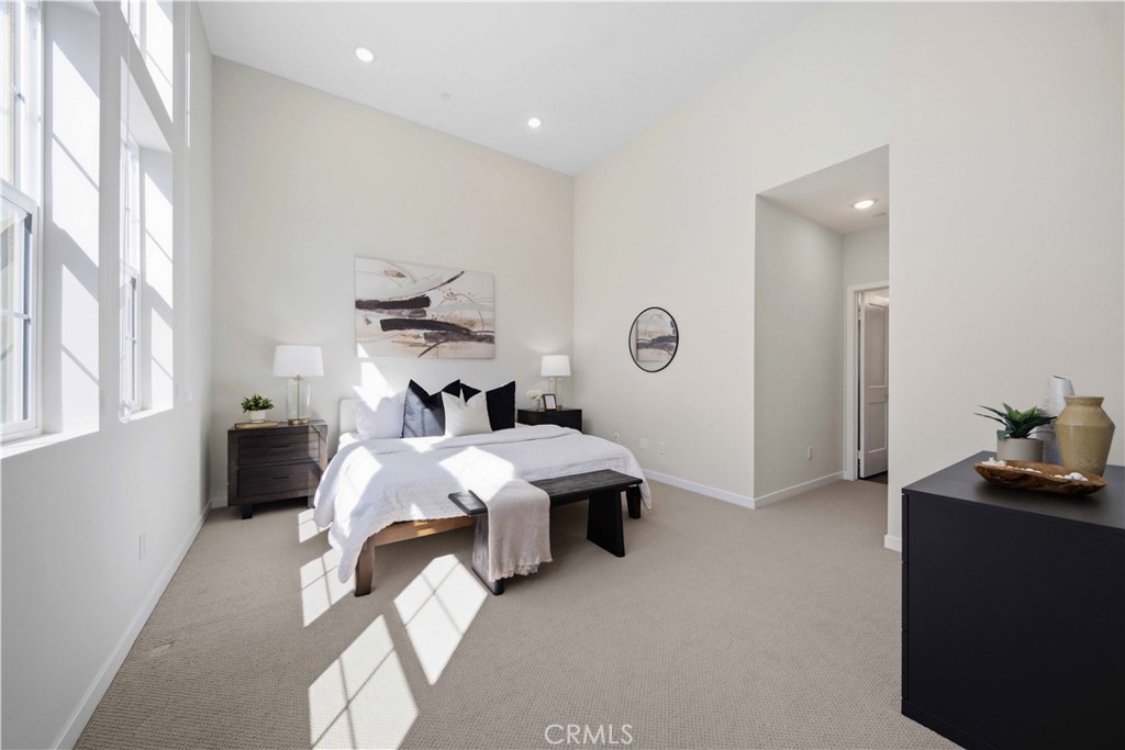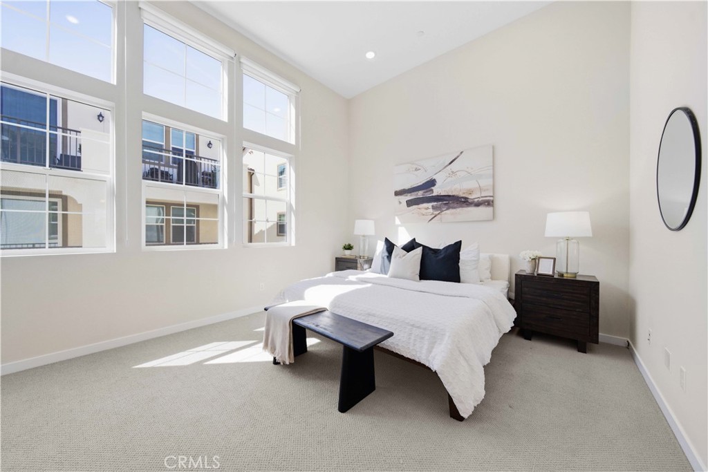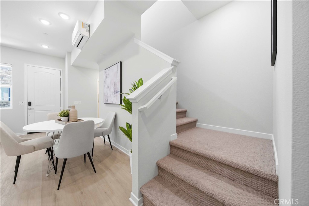 Welcome to 105 Lugo in Mission Viejo, a beautifully maintained, newer construction home built just about two years ago and proudly owned by its original owner. Located in the desirable Saddleback Place community by Trumark Homes, this modern residence offers the perfect blend of contemporary design, energy efficiency, and low-maintenance living. With approximately 887 square feet of thoughtfully designed space, the open-concept floor plan feels bright and spacious, enhanced by oversized dual-pane windows that fill the home with natural light. The main living area features wood-look luxury vinyl flooring, recessed lighting, and custom window treatments, creating a clean, sophisticated look. The kitchen is both stylish and functional, complete with stainless steel appliances, sleek countertops, white cabinetry, and seamless flow into the living and dining areas--ideal for everyday living and entertaining. Upstairs, plush upgraded Berber carpeting lines the staircase, hallway, and primary bedroom, adding warmth and comfort. The spacious primary suite is highlighted by dramatic 13-foot ceilings, creating an airy retreat with an open, light-filled ambiance. Built with today's efficiency standards in mind, the home includes owned solar panels and a tankless water heater, offering long-term energy savings. An oversized one-car garage plus an additional dedicated parking space provide added convenience. Residents enjoy access to the community pool, spa, and BBQ area, perfect for relaxing or gathering with friends. Conveniently located near the 241 Toll Road, major freeways, shopping, and dining, this home delivers modern comfort in a highly desirable Mission Viejo location. 105 Lugo is a rare opportunity to own a nearly new, original-owner home that has been meticulously cared for from day one.