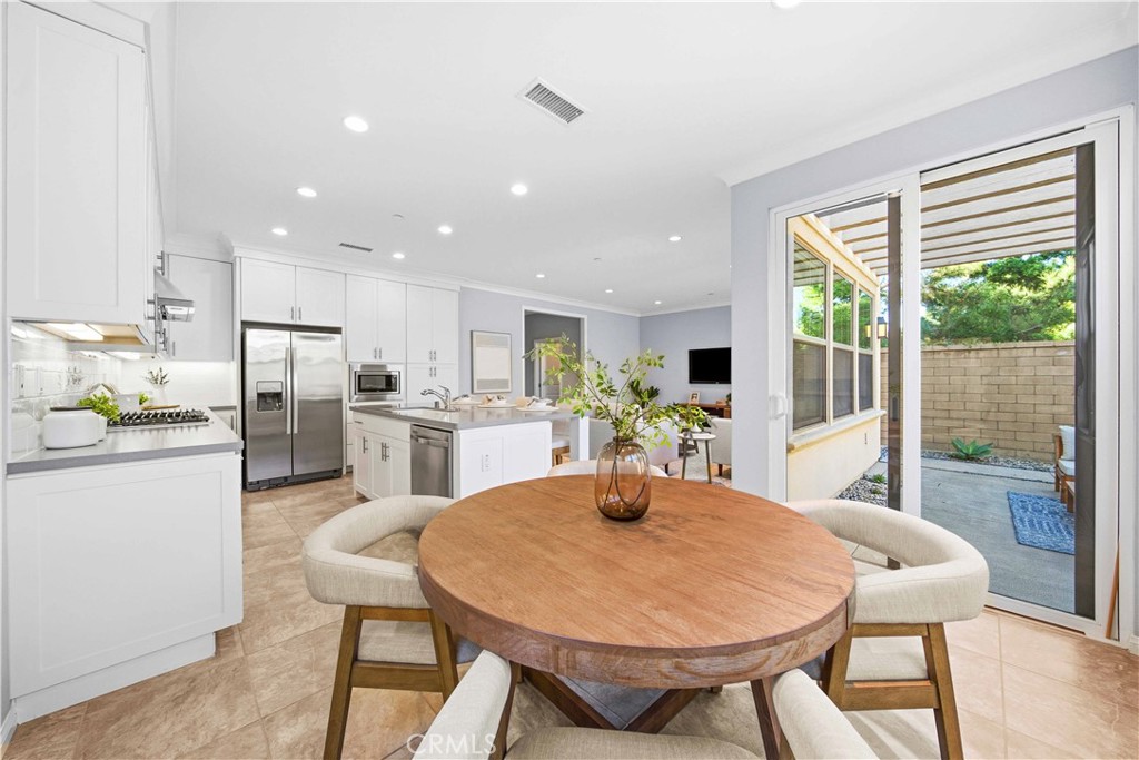 Welcome to 125 Island Coral, a beautiful detached home located in the heart of Cypress Village, one of Irvine's most sought-after master-planned communities. Tucked along a quiet, interior street, this 3-bedroom, 2.5-bathroom home offers 1,745 SQFT of thoughtfully designed living space and an attached 2-car garage, combining comfort, style, and functionality in one stunning package. Built in 2016, this home showcases a bright, open floorplan with high ceilings, natural light, and designer upgrades throughout. The Great Room seamlessly flows into the gourmet kitchen, featuring crisp white shaker cabinetry, Quartz countertops, white tile backsplash, stainless steel appliances, and a spacious center island--perfect for meal prep and casual dining. A dedicated dining area off the kitchen adds charm and function, while sliding glass doors lead to a low-maintenance backyard that features a custom deck surrounded by mature bamboo, fruit trees in handcrafted concrete pottery, and two distinct entertaining spaces--one under a shaded covered patio, and another on the elevated deck--offering the perfect setting for zen-inspired relaxation or hosting guests. Upstairs, the spacious primary suite offers a personal retreat with a walk-in closet, dual vanities, and a spa-inspired walk-in tiled shower. Two generously sized secondary bedrooms, a full hall bath, and an upstairs laundry room with built-in cabinetry complete the second level. Additional highlights include recessed lighting, custom window treatments, tankless water heater, and energy-efficient systems throughout. Enjoy resort-style living with Cypress Village amenities including multiple Junior Olympic pools and spas, tot lots, picnic areas, sports courts, and lush parks--all within walking distance. Zoned for the top-rated Irvine Unified School District, including Cypress Village Elementary, Jeffrey Trail Middle School, and Irvine High School. Ideally situated near Woodbury Town Center, freeways, shopping, and dining, this move-in ready home offers the best of Irvine living. Don't miss your chance to own this turnkey beauty in one of Orange County's most vibrant communities!