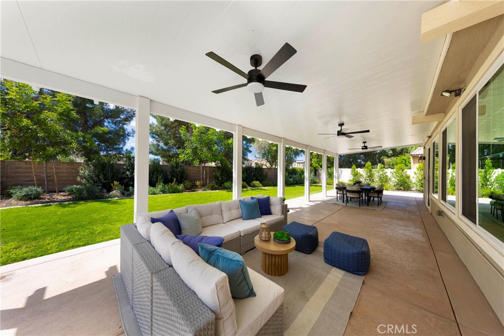 The expansive backyard showcases newer concrete hardscape, previously designed for recreational use and offering incredible versatility--perfect for a future sports court, outdoor entertaining, or even a pool, all while maintaining additional yard space. A full-width covered patio spans the back of the home, creating an ideal setting for year-round indoor-outdoor living.