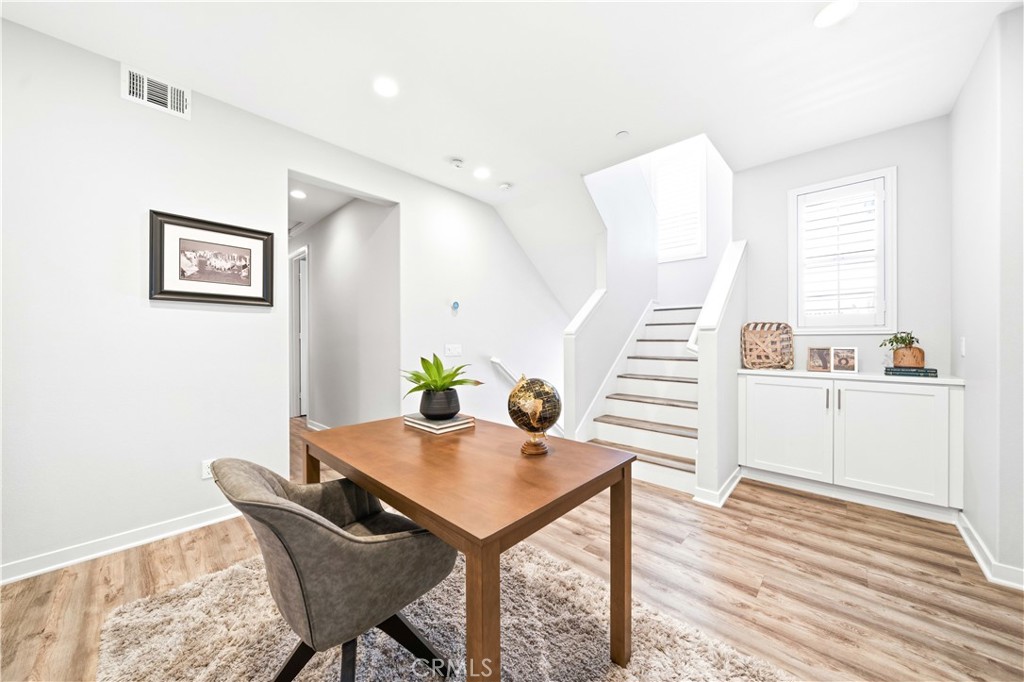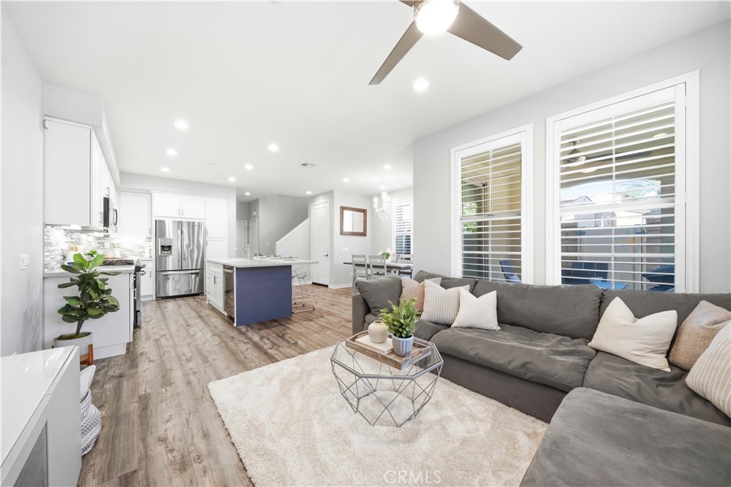 Welcome to 49 Finch, an exceptional and impeccably upgraded residence in the highly coveted, resort-style community of Baker Ranch. Proudly offered by its original owners, this 3-bedroom, 2.5-bath home with two expansive lofts reflects meticulous care, thoughtful enhancements, and true pride of ownership. Positioned as a premium front-facing home, it offers enhanced privacy, abundant natural light, and picturesque views. Upon entry, you're greeted by a light-filled, open-concept layout with designer flooring throughout--including bedrooms, lofts, and stairs--creating a cohesive aesthetic. The interior features a custom paint palette and shutters throughout. The gourmet kitchen showcases quartz countertops, an oversized island with decorative detailing, stainless steel appliances, and white cabinetry, opening to the expansive great room ideal for entertaining and daily living. Upgrades include designer lighting, modern faucets, LED lighting, and Lutron smart switches. The great room opens to a covered California Room with ceiling fan and a professionally landscaped backyard with artificial turf and pavers for low maintenance. Upstairs, a versatile loft adds flexibility, while the primary suite features a spa-inspired bath with dual vanities and a frameless glass shower. Two secondary bedrooms and a laundry room complete the second level. The third-floor loft offers a spacious, light-filled area ideal for a gym, media room, or office. Additional upgrades include security window film and a permitted 220V (NEMA 14-50) EV outlet. Baker Ranch amenities include pools, parks, trails, sports courts, and a clubhouse, with low HOA and no Mello-Roos. A rare opportunity to own a highly upgraded, turnkey home in one of Orange County's most sought-after communities.